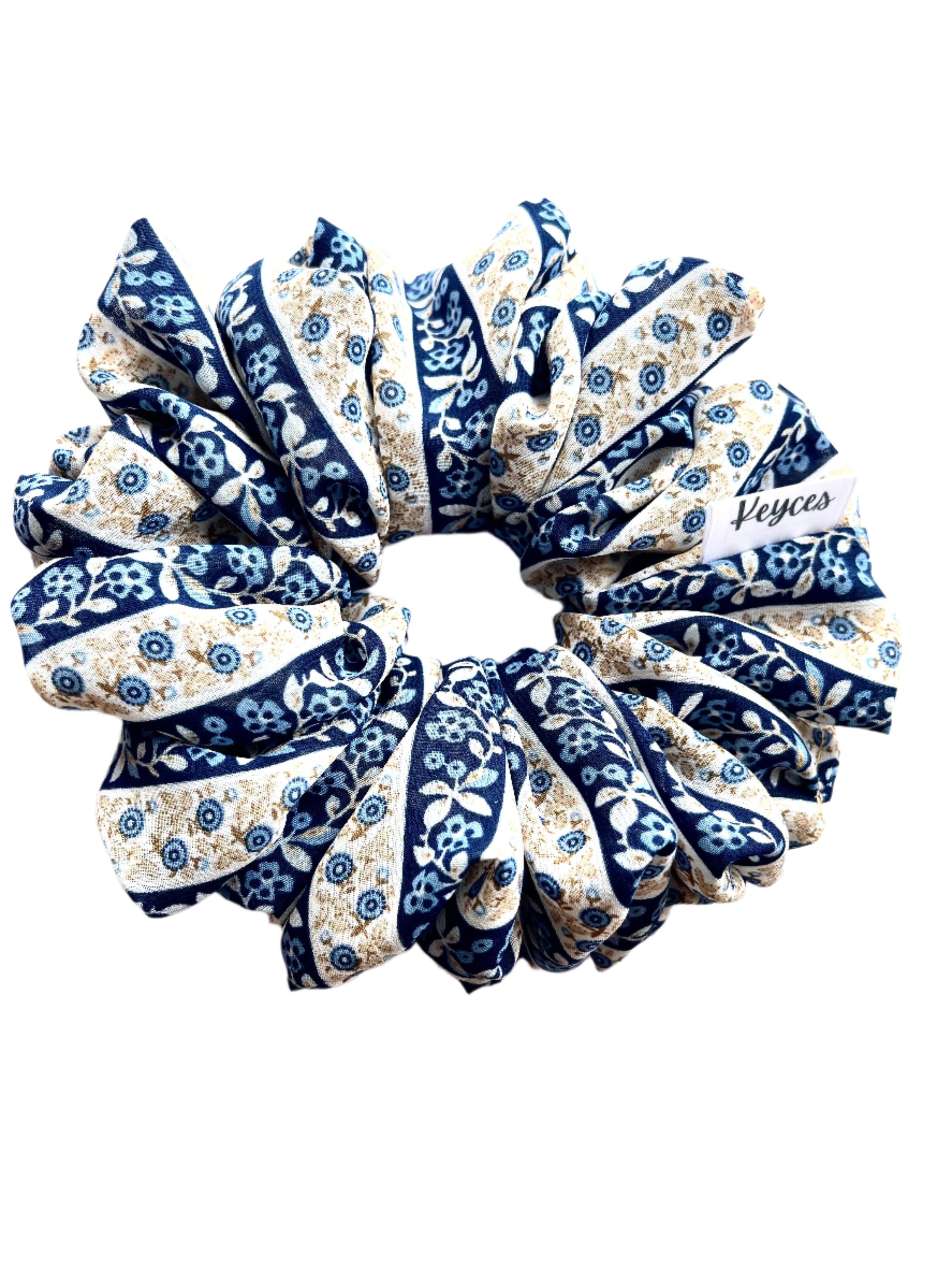 Elevate your hairstyle with our Chloe LARGE scrunchie in beautiful blue and white chiffon. This oversized scrunchie adds a touch of elegance to any look while being gentle on your hair. The soft chiffon fabric prevents breakage and creates a statement accessory that works for both casual and dressy occasions.