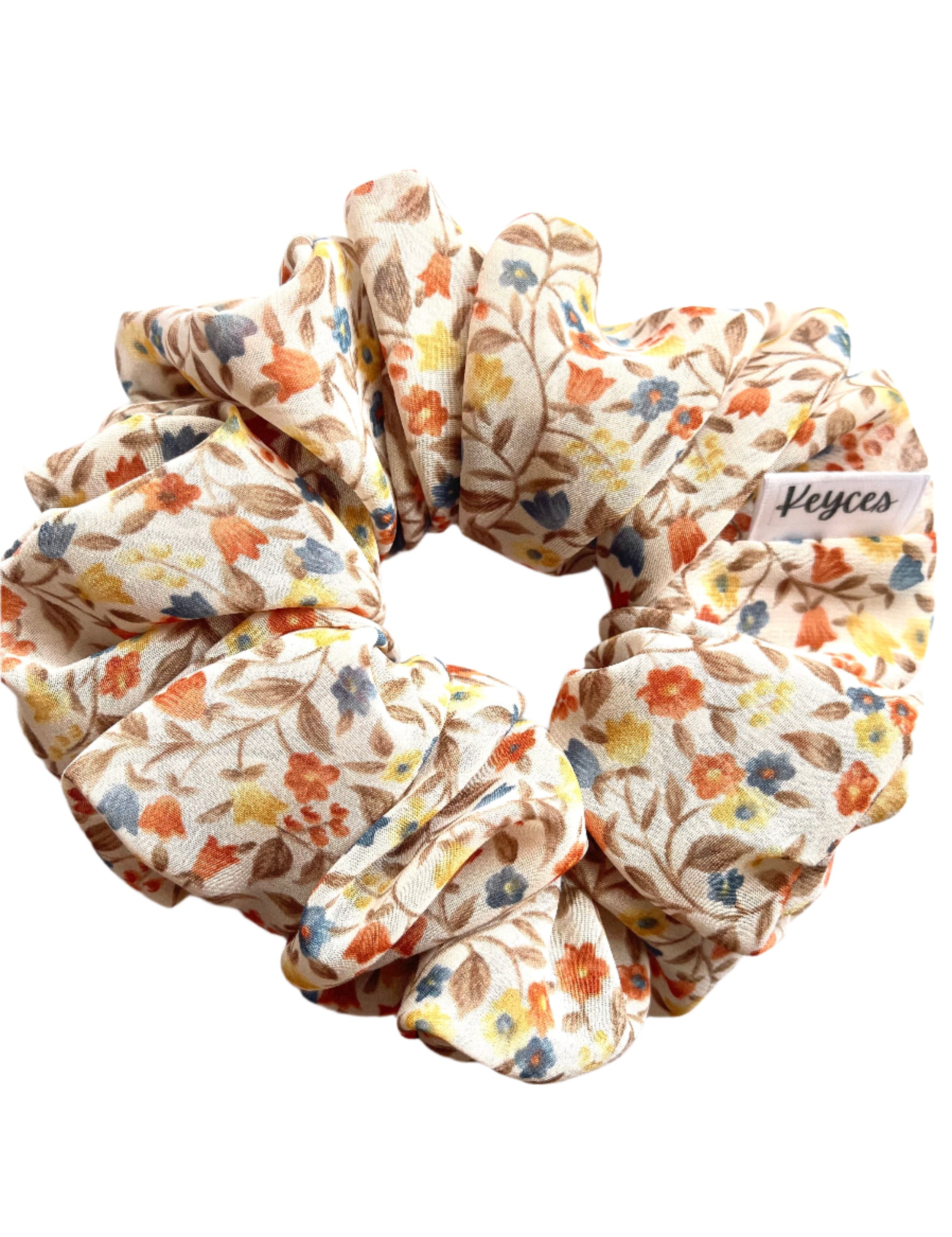 Elevate your hairstyle with our Daniella LARGE scrunchie. This oversized boho-inspired accessory features delicate floral patterns on soft chiffon fabric that's gentle on your hair. Perfect for creating voluminous buns or ponytails while adding a touch of carefree, bohemian charm to any outfit. The lightweight design ensures comfortable all-day wear.