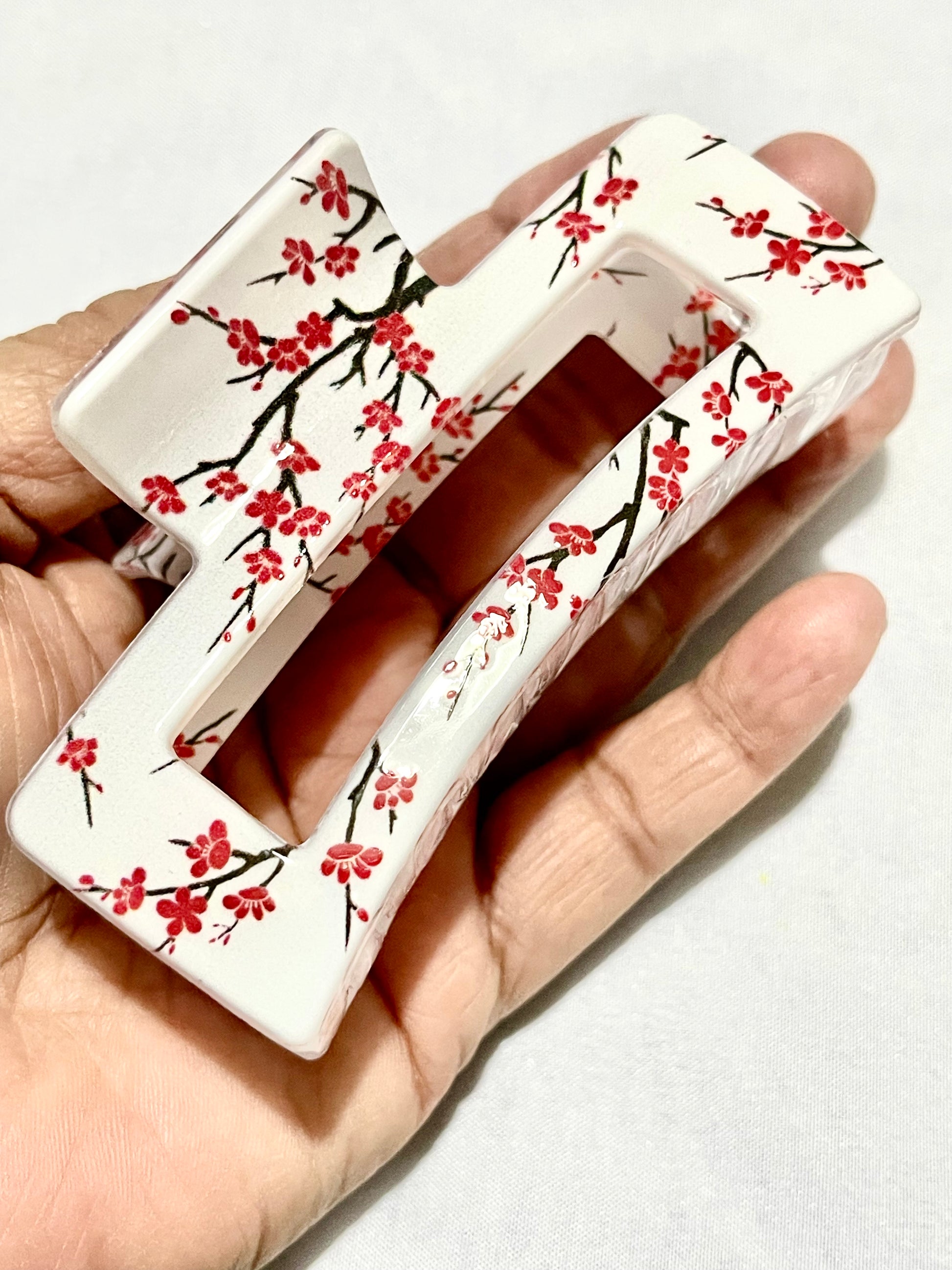 This red floral hair claw combines practicality with a lovely design to keep your hair neatly in place. Its vibrant floral pattern adds a cheerful touch to any outfit, while the secure grip ensures your hairstyle stays comfortable all day. Perfect for enhancing your look with ease and confidence.