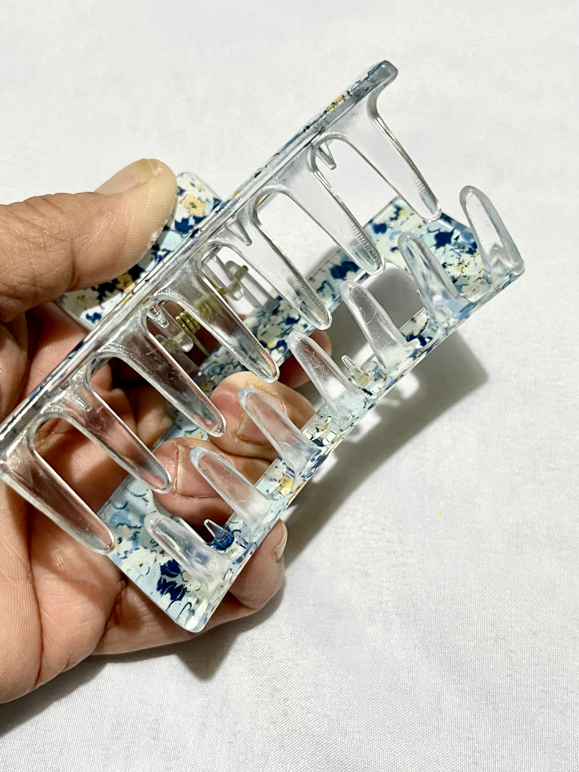 This delicate floral hair claw adds a charming touch to your hairstyle while keeping your hair neatly in place. Its lightweight design ensures comfortable wear throughout the day, making it perfect for both casual and special occasions. Embrace effortless elegance with this dainty accessory that supports your style with subtle beauty.