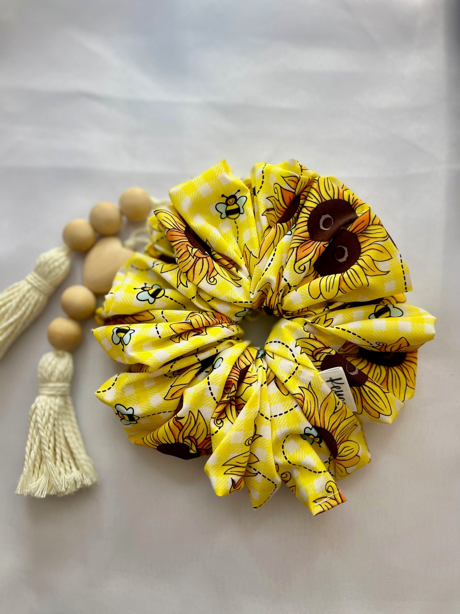 The Sunflower XXL cotton poplin scrunchie brings radiant energy to your hair styling routine. Made with soft, breathable cotton poplin fabric, this oversized scrunchie gently secures your hair without causing breakage. Its cheerful sunflower design adds a touch of warmth to any look, while the durable construction ensures it will be a reliable companion for all your hairstyling needs. We're here to help you express yourself with confidence!